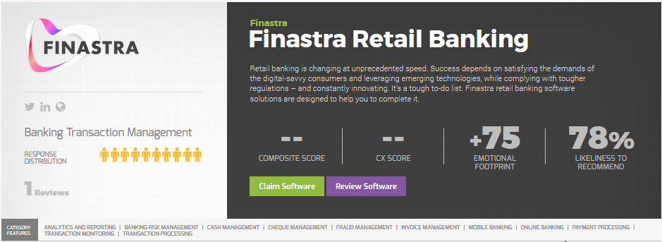 Finastra Retail Banking at Software Reviews, Accessed November 28, 2019