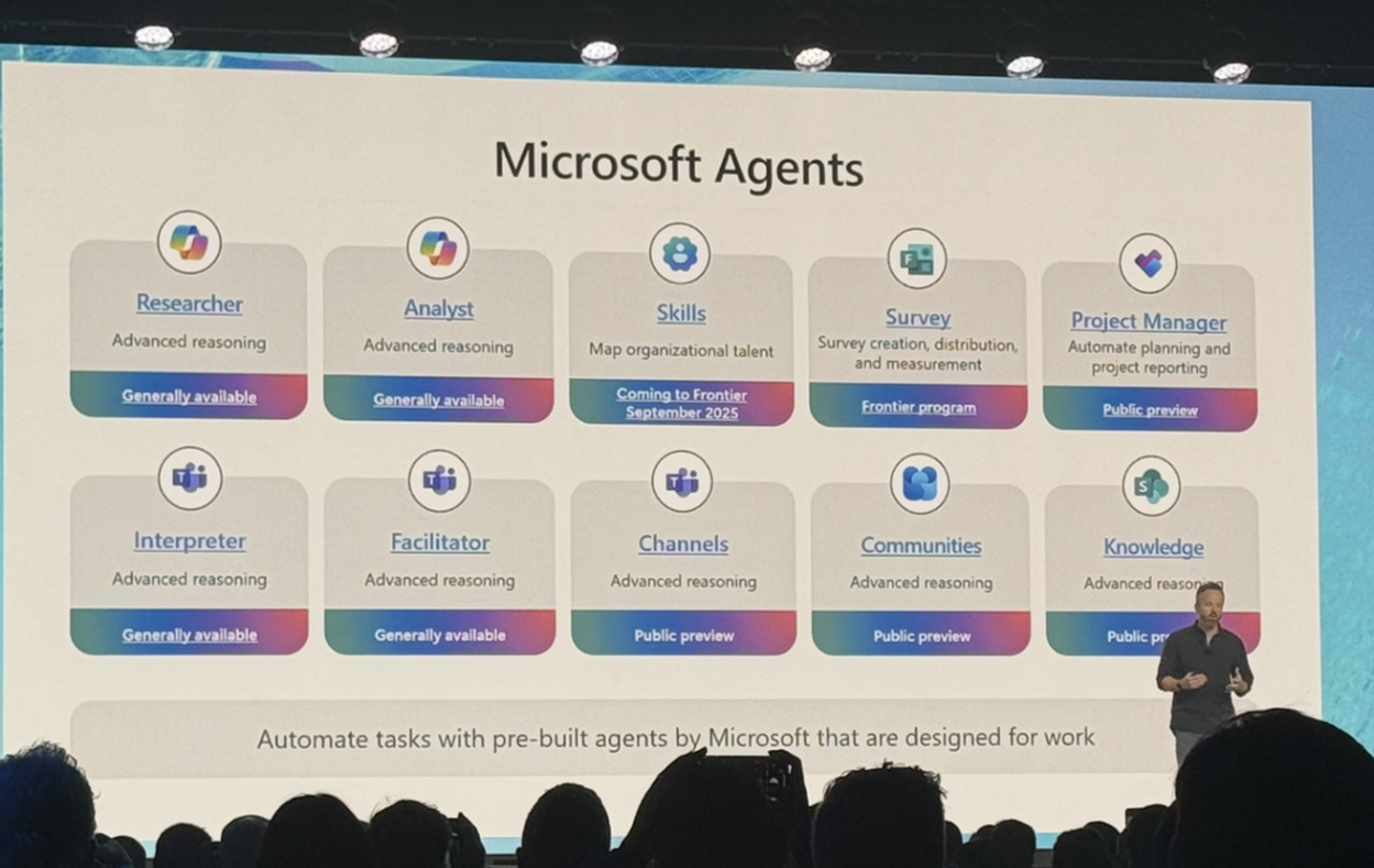 Judson Althoff, CEO of Microsoft’s Commercial Business, presented Microsoft’s vision of the “frontier firm” with a framework comprising employee experience, customer engagement, business process reinvention, and innovation. Centering on a “Copilot everywhere” strategy, Althoff highlighted developments across three categories: AI Business Solutions, Cloud and AI Platforms, and Security. Product updates featured M365 Copilot’s expanding “5-in-1” experience (chat, search, agents, notebooks, and creation), real-time audio input, Viva Insights agent reporting, and Copilot Studio for building and managing custom agents.