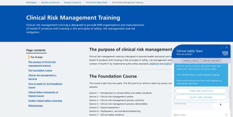 Curious to see the NHS Clinical Safety Team chatbot for yourself? Try it here. See also: